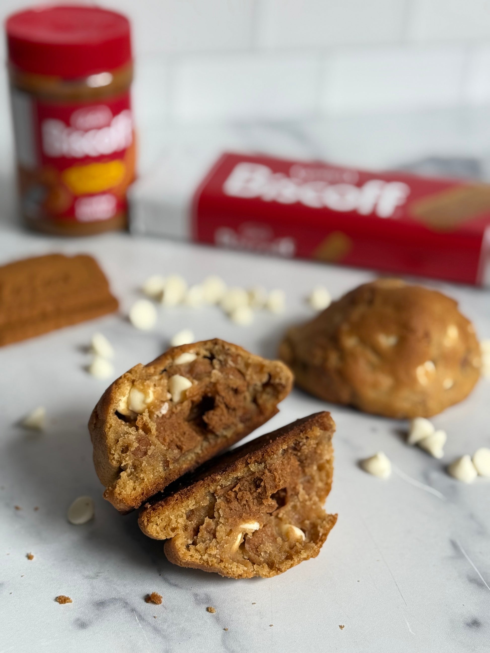 Una galleta irresistible rellena con trozos de galleta Biscoff, suave crema de Biscoff y el toque perfecto de chispas de chocolate blanco. Un delicioso sabor dulce que derrite el paladar en cada mordisco.