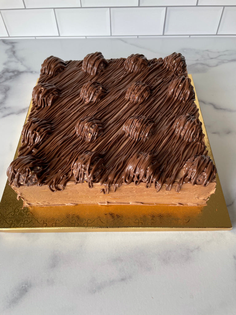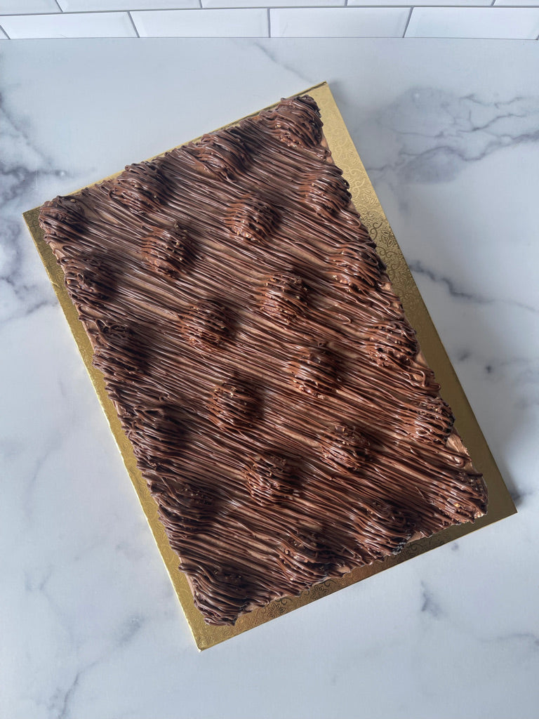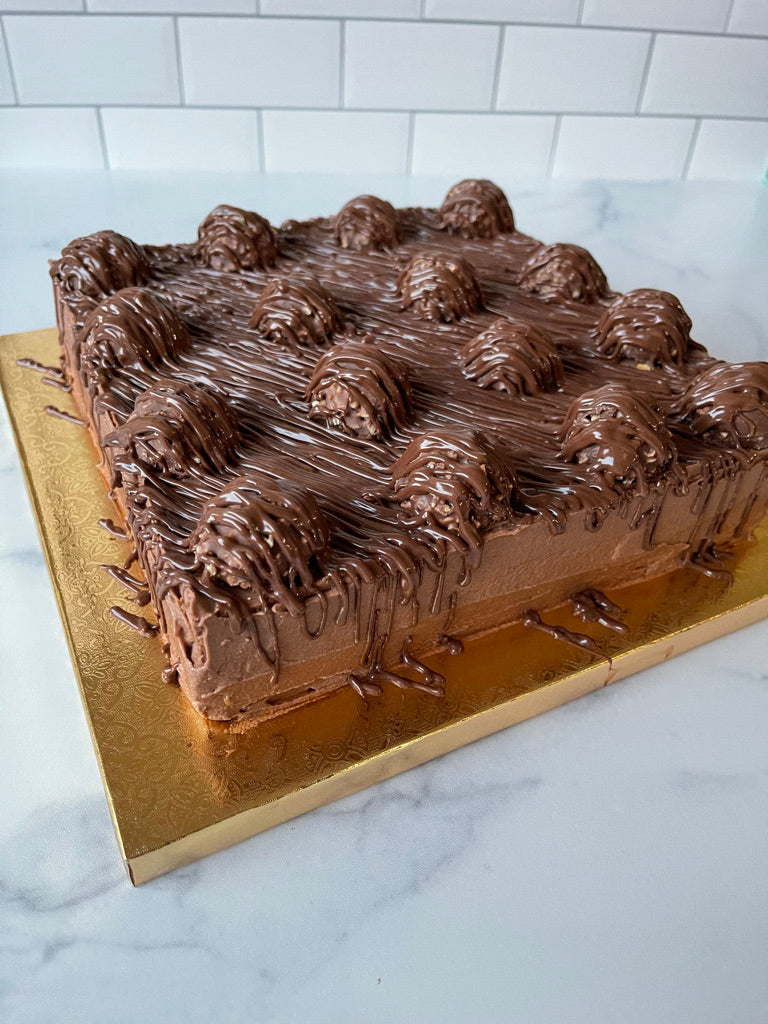 Tarta hecha de galletas María Puig y crema de Nutella. Decorada con Ferreros y Nutella.