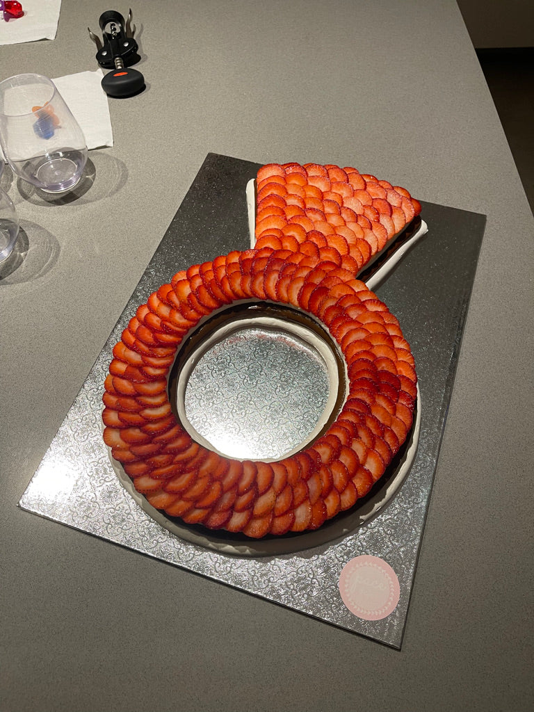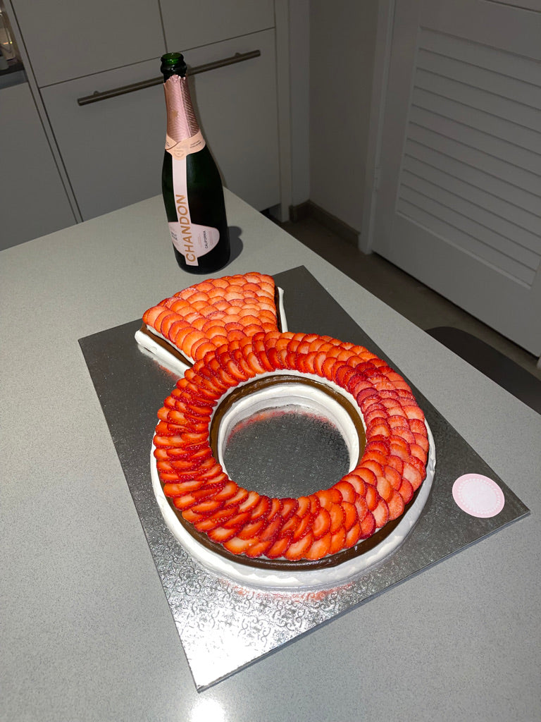 Tarta a base de merengue crocante, rellena de dulce de leche o Nutella y cubierta de crema chantillí y fresas.
