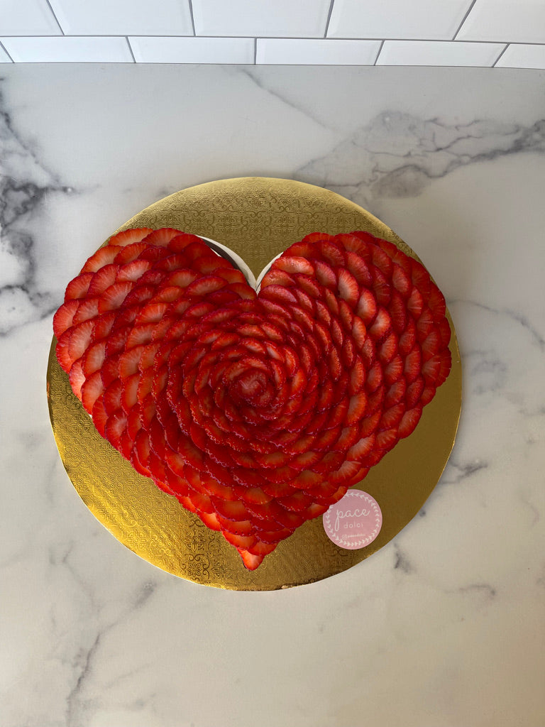 Tarta a base de merengue crocante, rellena de dulce de leche o Nutella y cubierta de crema chantillí y fresas.