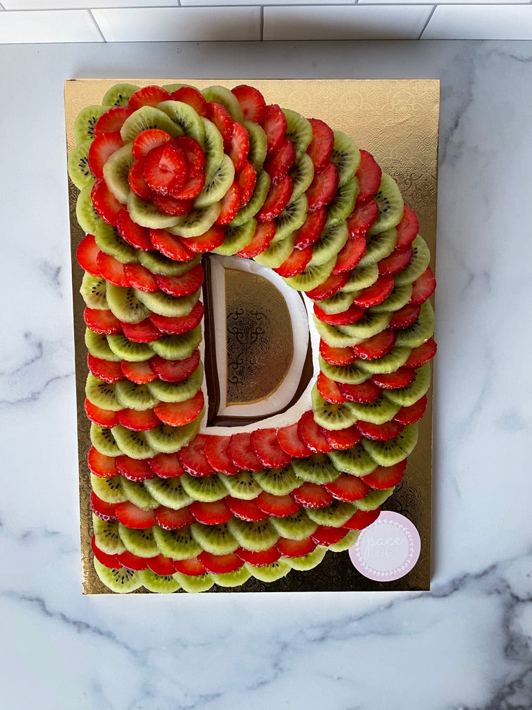 Tarta a base de merengue crocante, rellena de dulce de leche o nutella y cubierta de crema chantillí y kiwi y fresas.